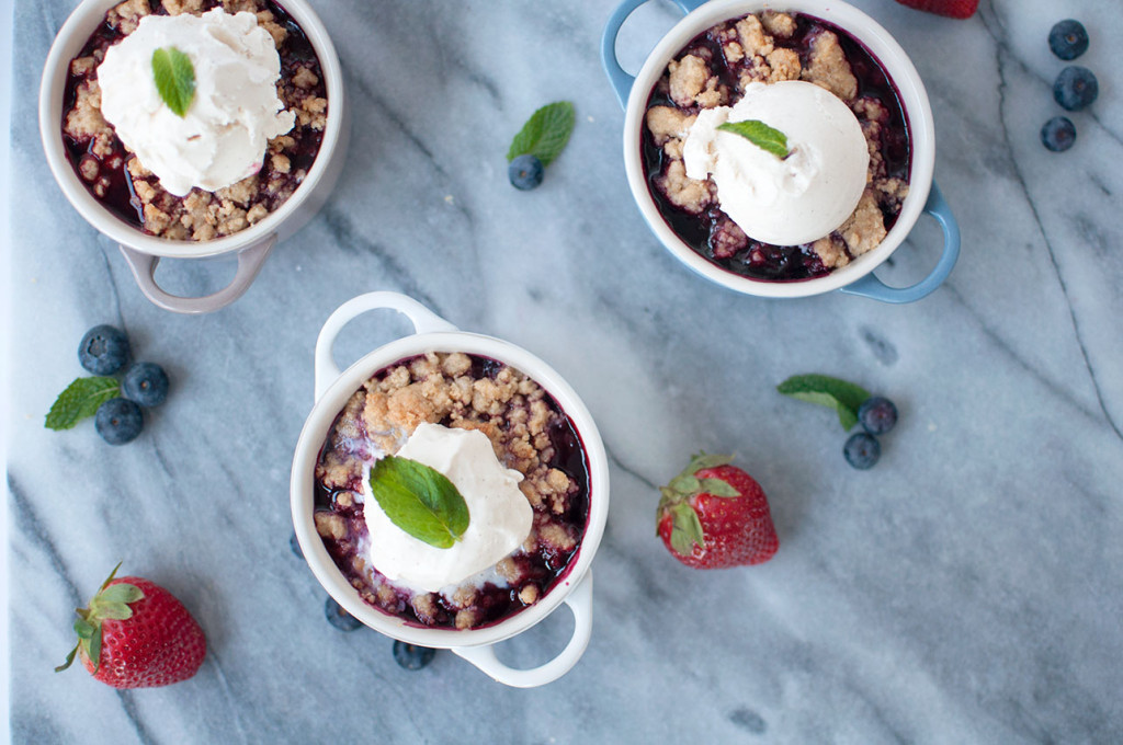 I learned a variation of this recipe during a baking class I took here in the city. It’s fairly easy and doesn’t require any in depth baking knowledge! Berries might not be in season but frozen berries work just as well. When I served these, I topped each with a scoop of vanilla bean ice cream and fresh mint.