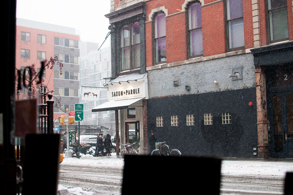 Nothing like cozying up on a cold winter day to a nice hot cocktail. This past weekend it was pretty snowy in NYC. I was out with my friend Christina who also has a blog (Minnie in Manhattan). We were trudging through the snow struck streets taking photographs of the city and her pup, Minnie, until our fingers were frozen. Unable to bear another minute of the cold, we dropped inside the cute little wine bar on Bleeker street called VON. The interior was rustic and reminiscent of a medieval castle. Their menu consisted of a dozen or so wine options handwritten in chalk on a blackboard. Wanting to warm our fingers, we opted for the one hot cocktail option: the hot toddy. A hot toddy is a whiskey drink with water, sugar, and spices. This hot toddy was a little on the citrusy side and was garnished with a lemon wedge. The warmth definitely hit the spot.